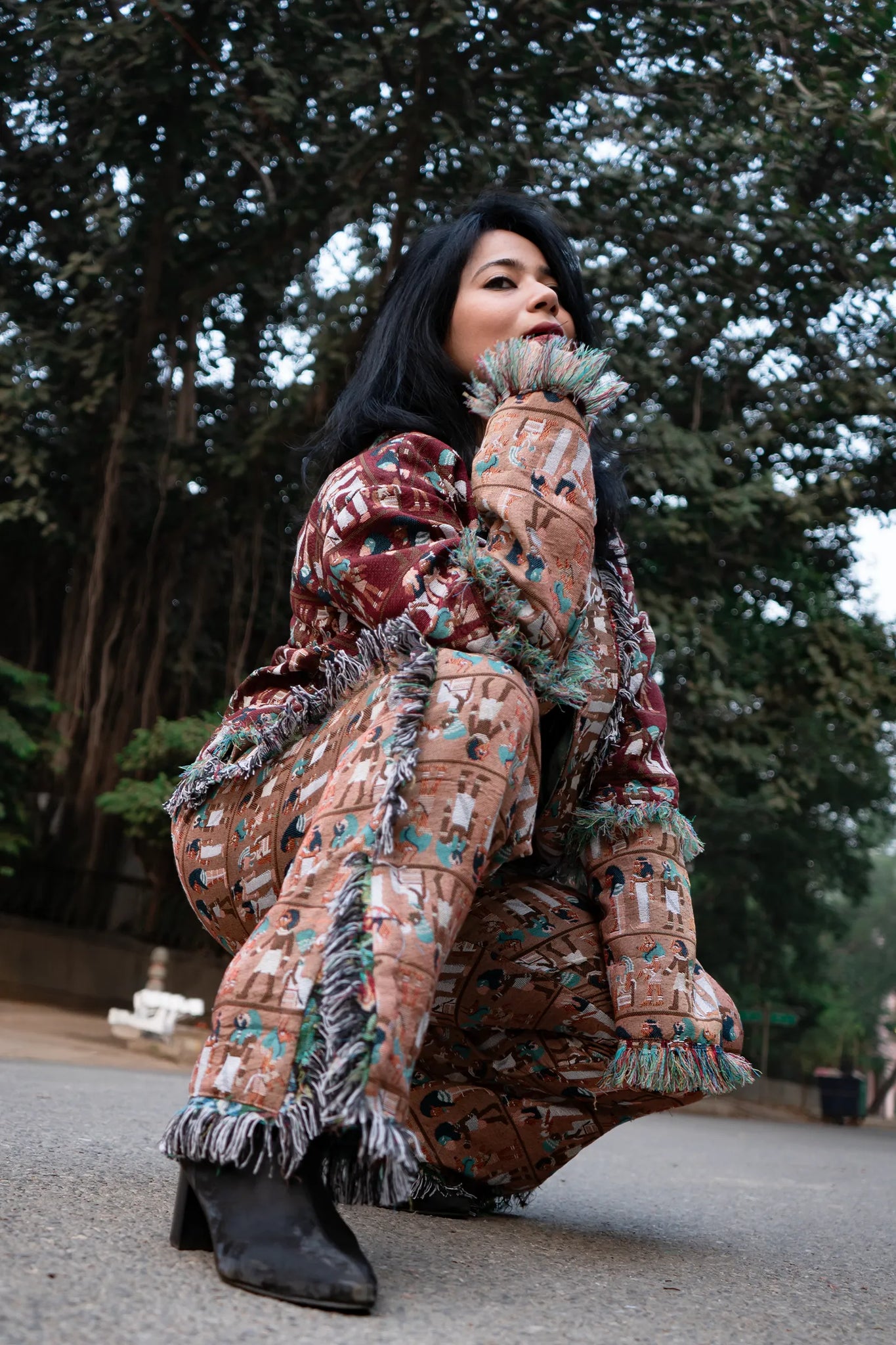 Step into the world of timeless luxury with our Golden Pyramid Co-ord Set, inspired by the grandeur of ancient Egypt. This meticulously crafted set features intricate pyramid-inspired patterns and a luxurious jacquard fabric that exudes sophistication. Perfect for making a statement, it’s a harmonious blend of history and modern style. Elevate your wardrobe with this regal ensemble that’s truly fit for royalty.