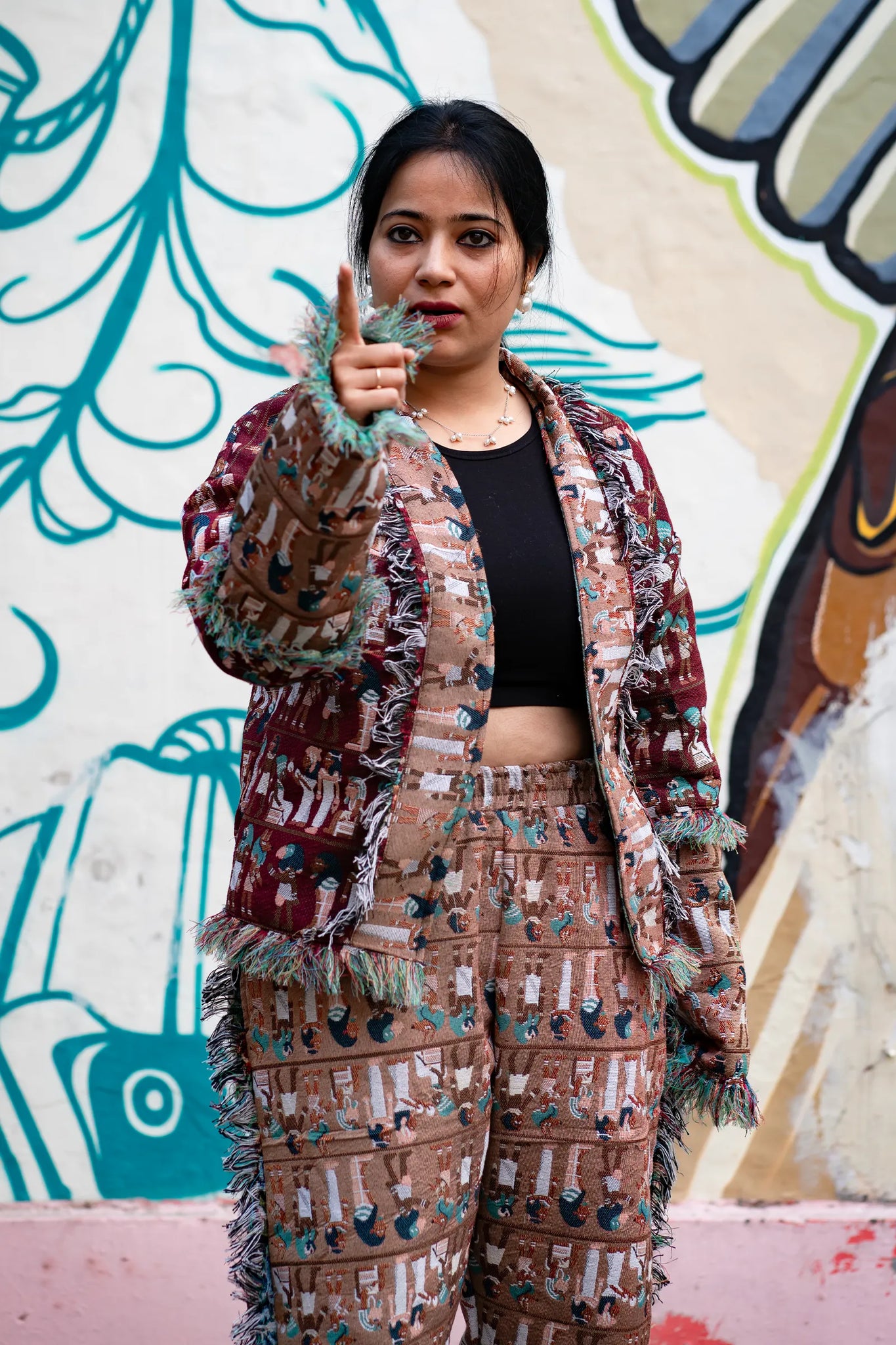 Step into timeless elegance with our Pyramid Threads Cardigan, crafted from luxurious jacquard fabric. Inspired by the grandeur of ancient Egyptian artistry, this cardigan features intricate patterns and a premium texture that exudes sophistication. Perfect for adding a regal touch to your modern wardrobe, it’s a blend of history and contemporary style. Embrace the luxury of the past, reimagined for today.